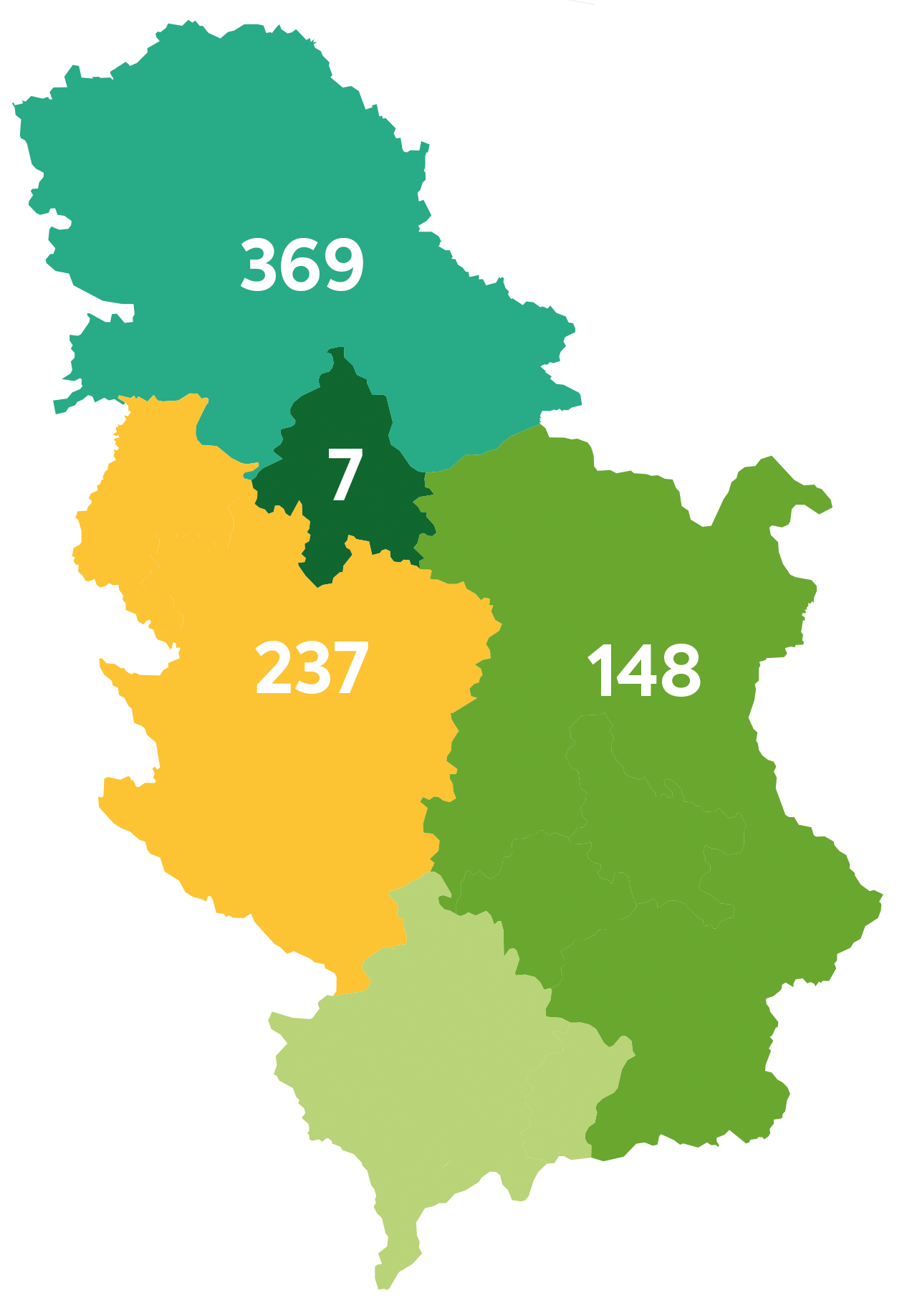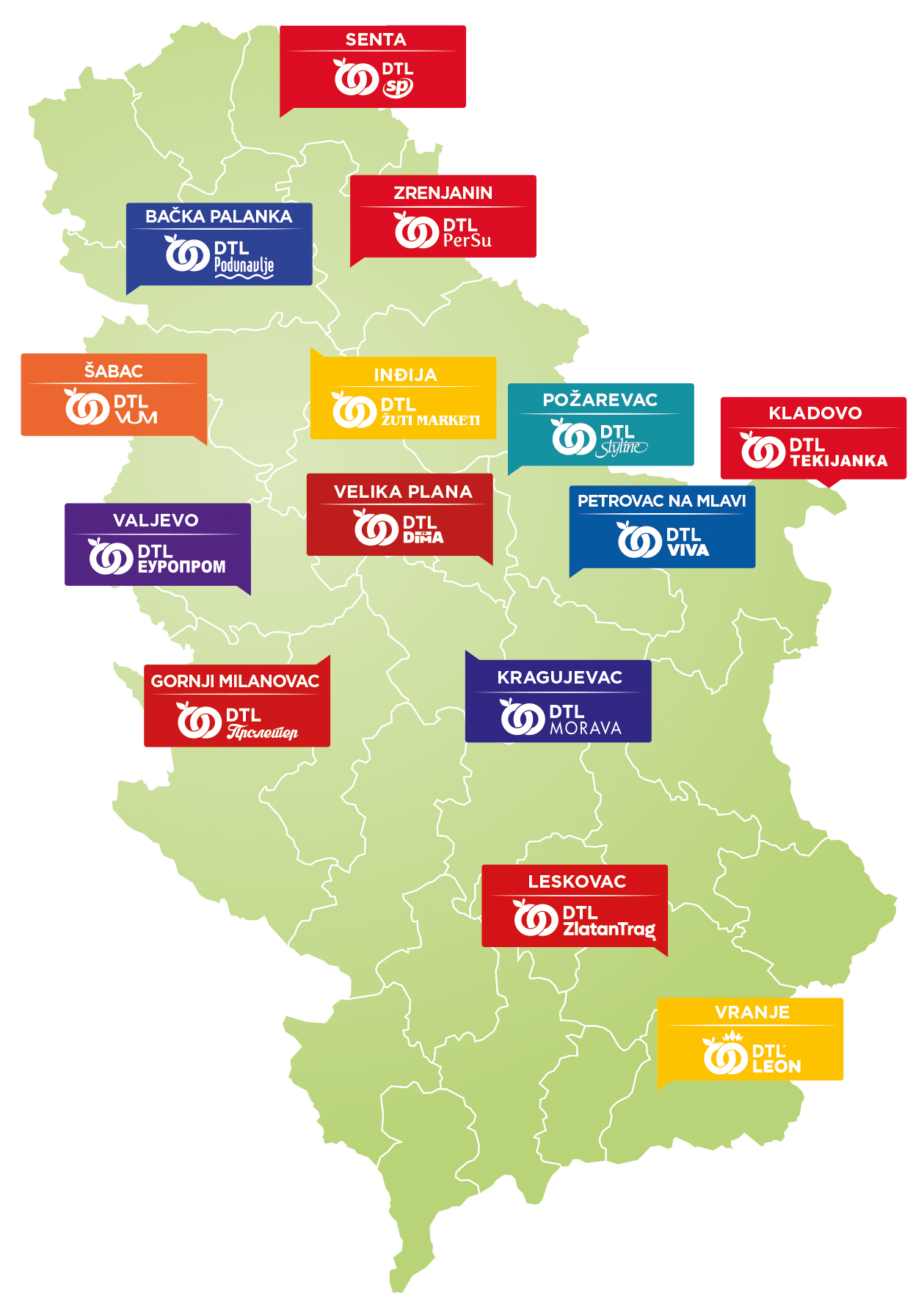 Broj DTL objekata prema formatima i regianlnom razmeštaju